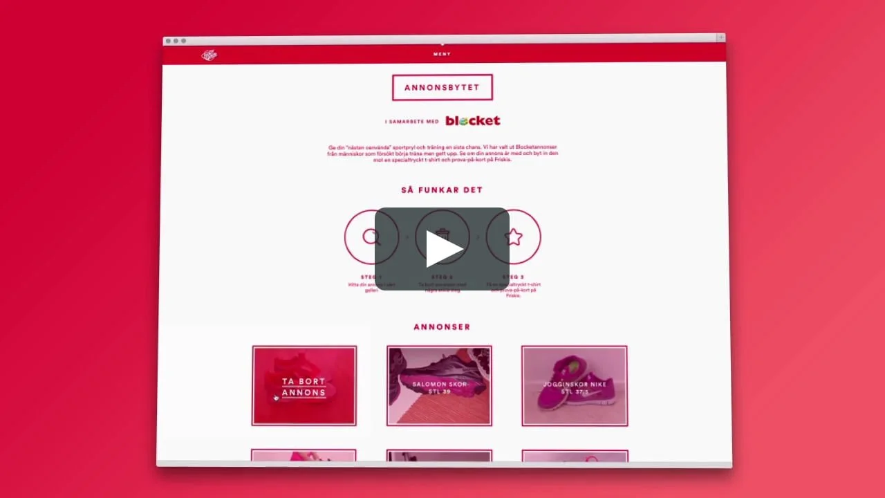 To promote the app, and maybe get a few pioneers on board, we built an online campaign, where we published hundreds of ads that were posted on Blocket (the Swedish version of Craigslist). The ads that were published contained training equipment, that the seller promoted as “hardly used” or “not even unpacked” - meaning that they gave up before even trying. We gave them an incentive to take down the ad, and keep the equipment, by offering them a custom Friskis&Svettis wear, and a free membership at the Friskis&Svettis gym. Through a web-service the seller could remove the ad straight from our campaign-site, and by connecting through the Blocket API we could automatically detect that the ad was actually removed. Now we knew that this person actually would reconsider and might actually use that piece of equipment for getting back on track with their exercise. Fingers crossed!