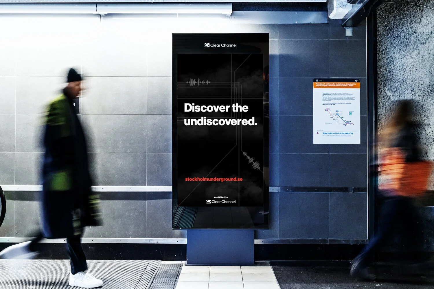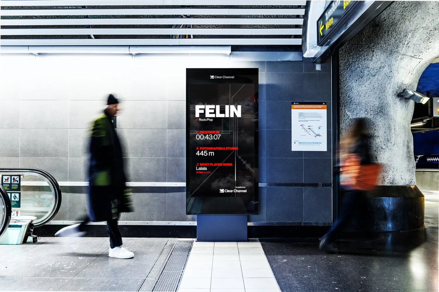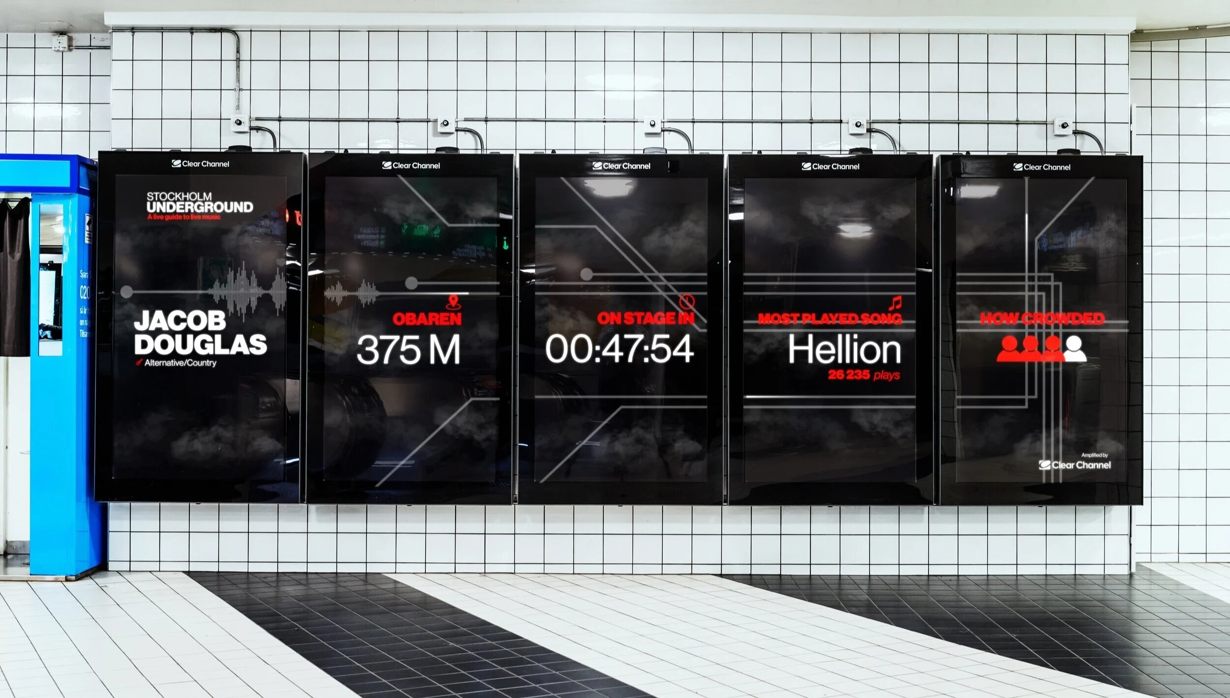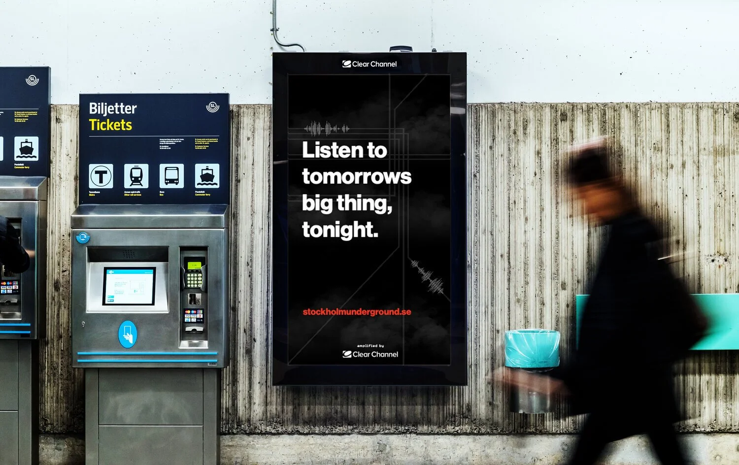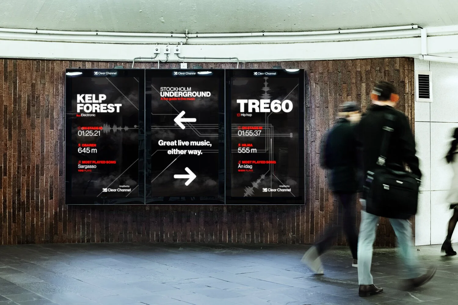 Clear Channel connects digital screens in the underground with Stockholm’s underground music scene, in attempt to push small bands into the light.