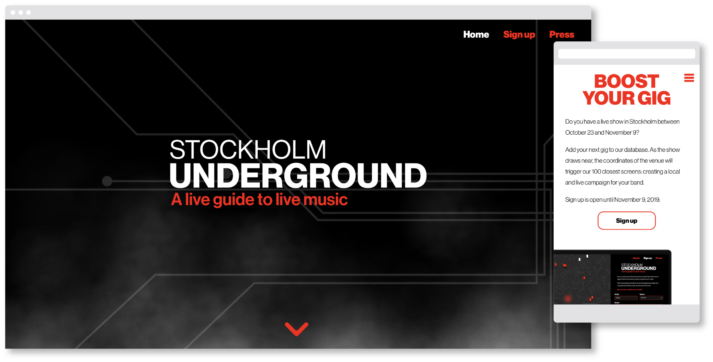 Apart from aggregating data from sites, blogs and Facebook-Events, the campaign also held an open invitation for bands to add their own gig-dates – giving even the smallest act a chance to make a big impact.