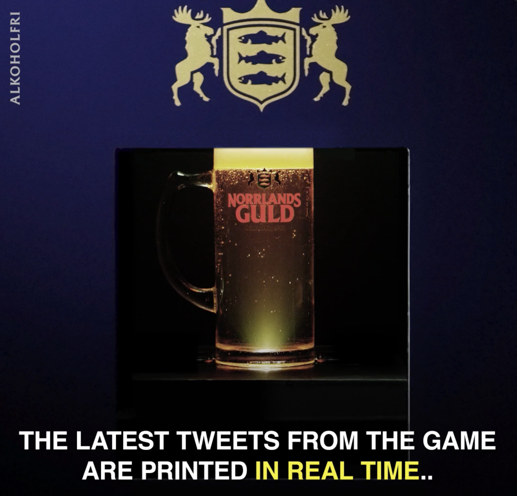 Social media are making us less social and 70 % of Swedes feel that their Phones just get in the way, when they get together. That´s why we brewed up a little something called “The Social Beer” - a technology that collects the latest world cup tweets and prints them directly on your beer, using a malt-based ink. In short, it´s twitter on tap, allowing people to follow the game mobile-phone-free. Tweet responsibly.